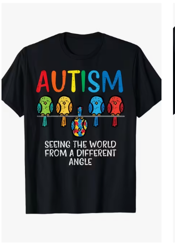 A beautiful tee featuring colorful birds on a wire with the message 'Autism — Seeing The World From A Different Angle.' Celebrates the unique perspective of individuals on the spectrum. Soft, breathable cotton blend.